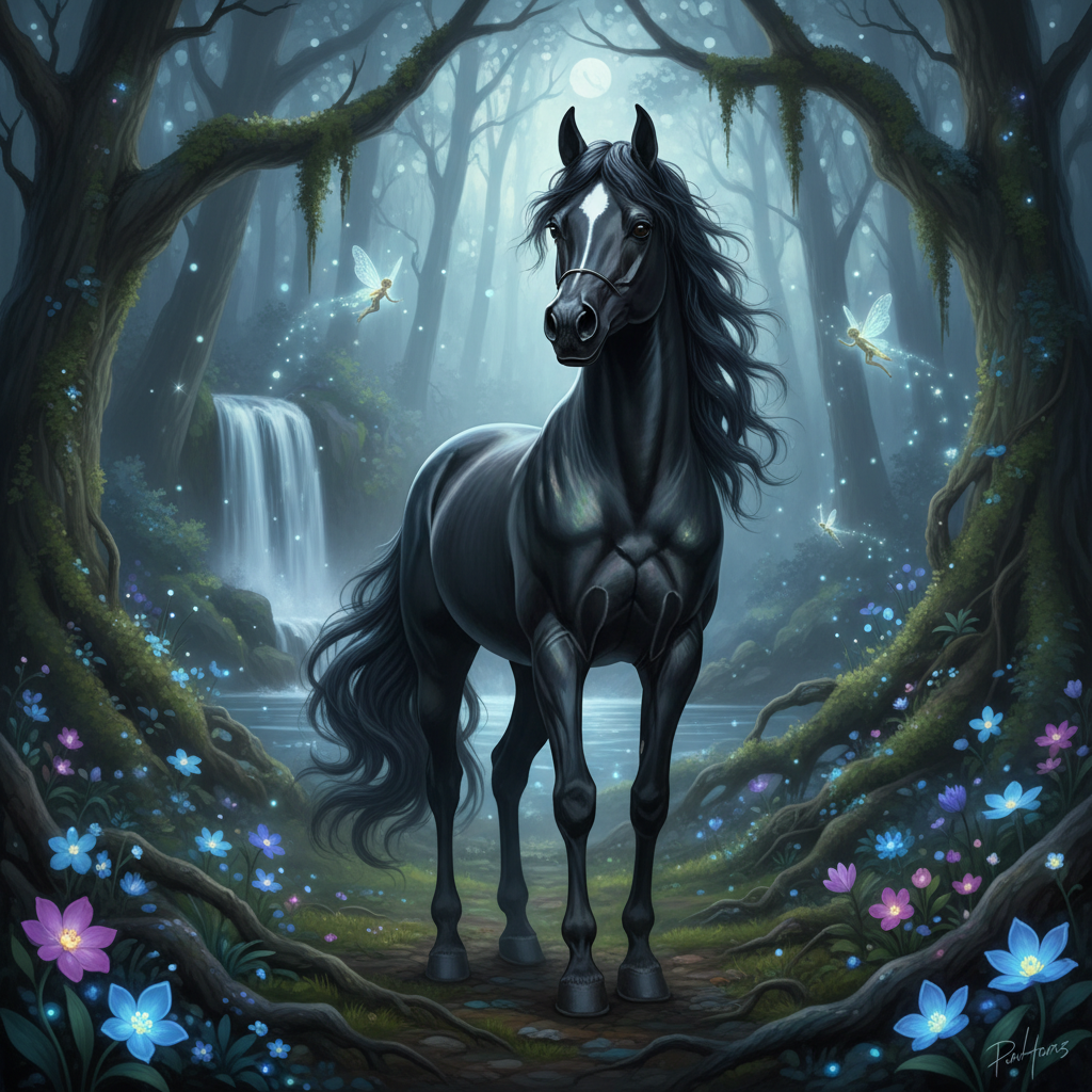 enchanted to meet you , a beautiful black horse!